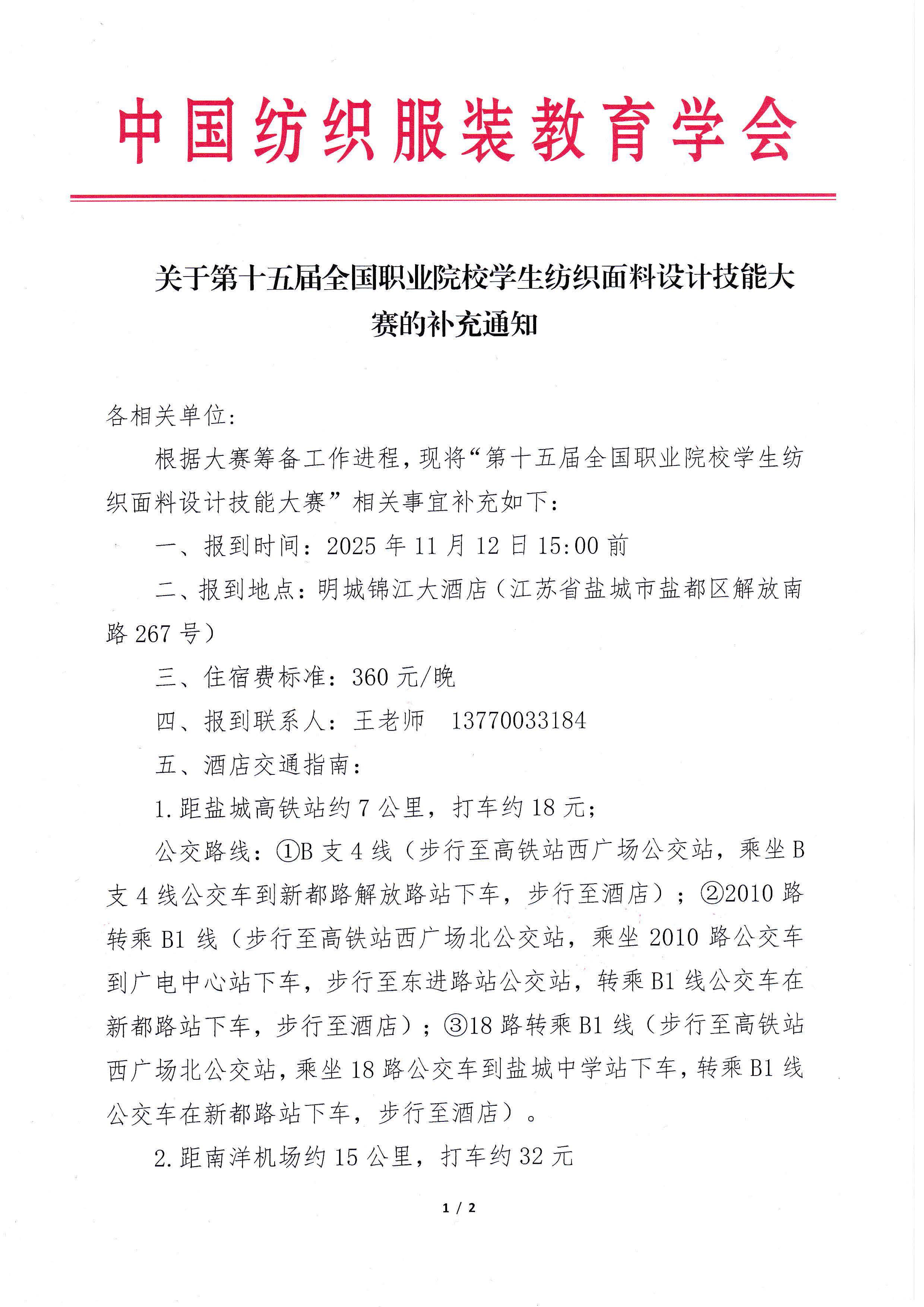 关于第十五届全国职业院校学生纺织面料设计技能大赛的补充通知