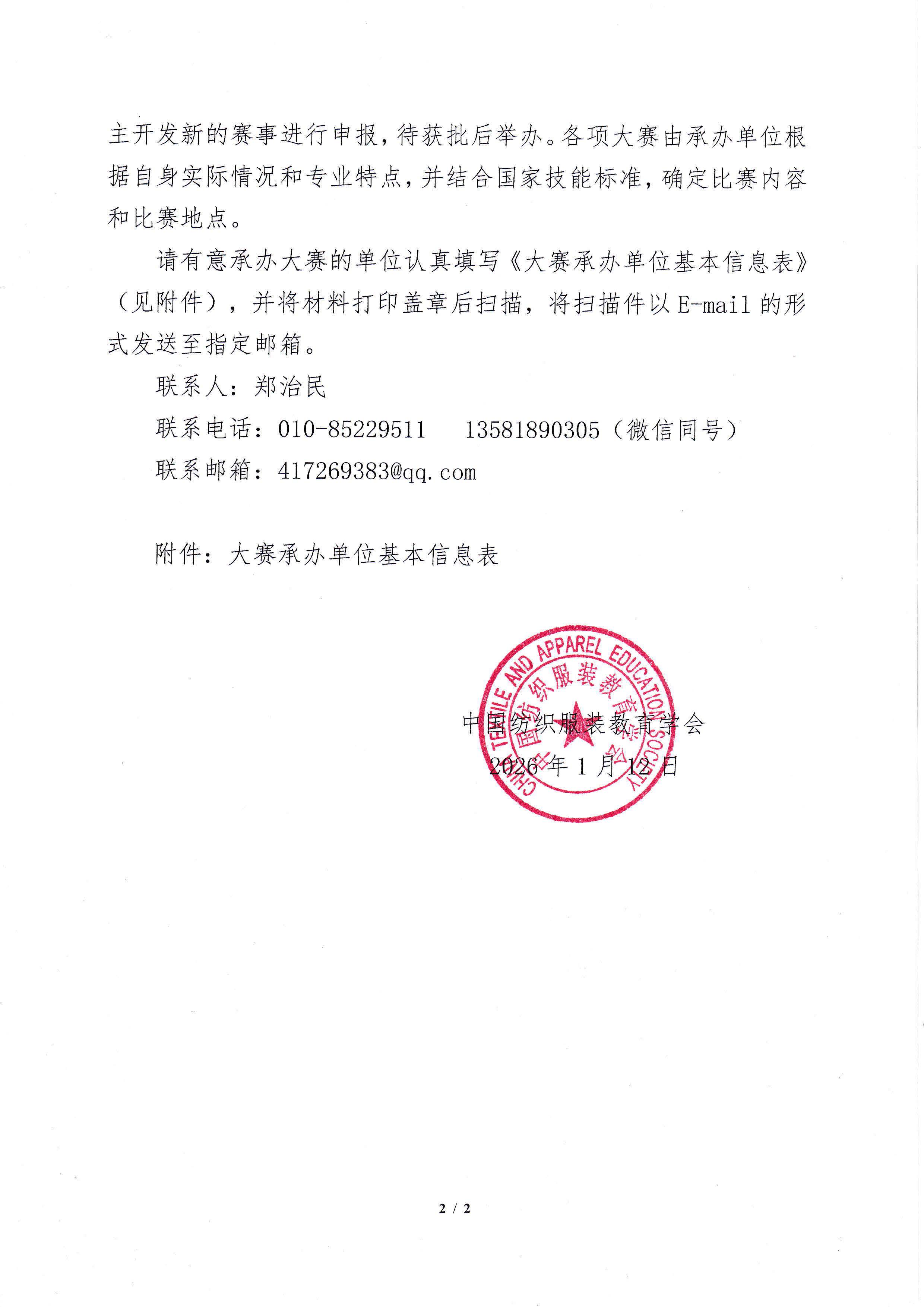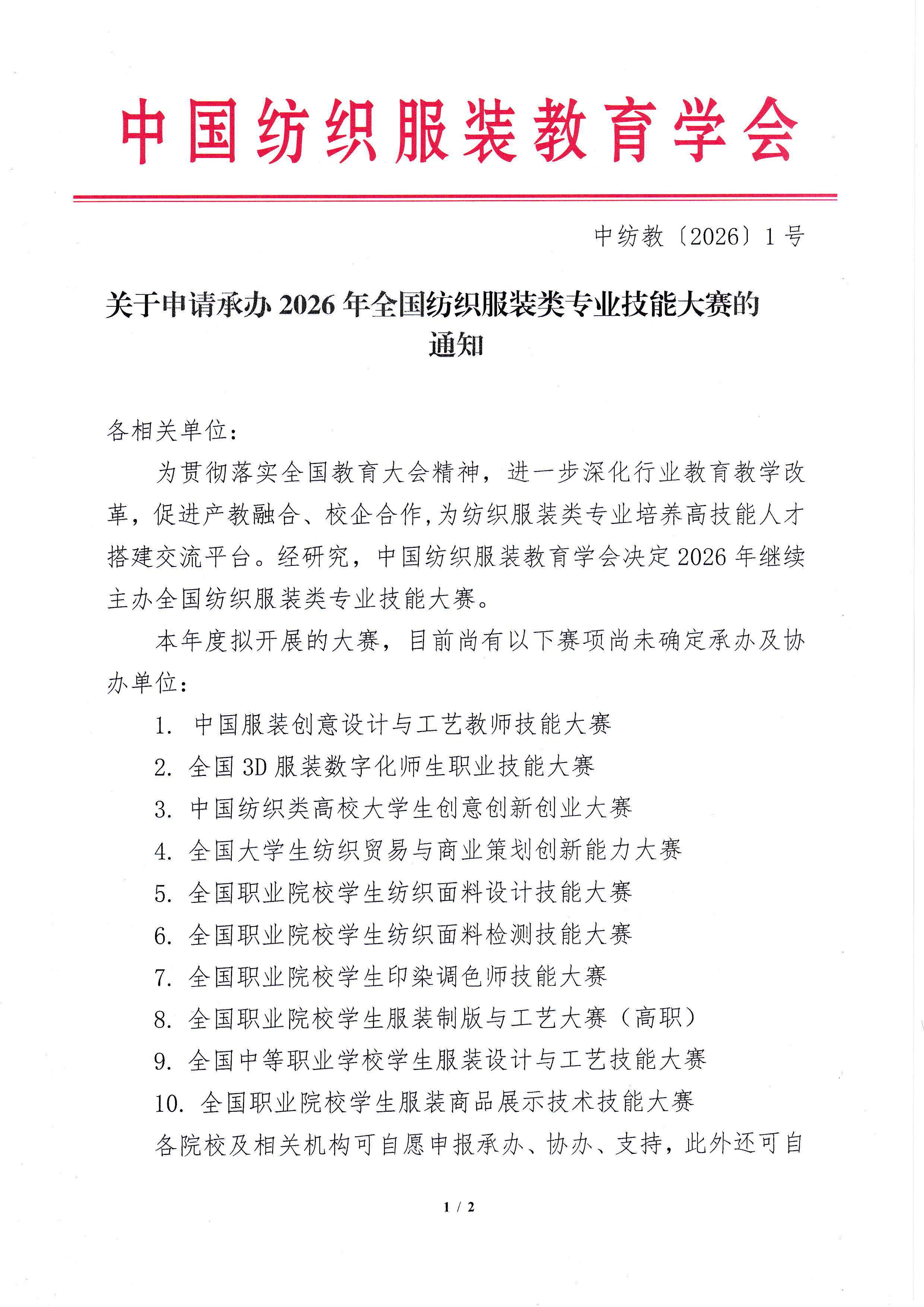 关于申请承办2026年全国纺织服装类专业技能大赛的通知