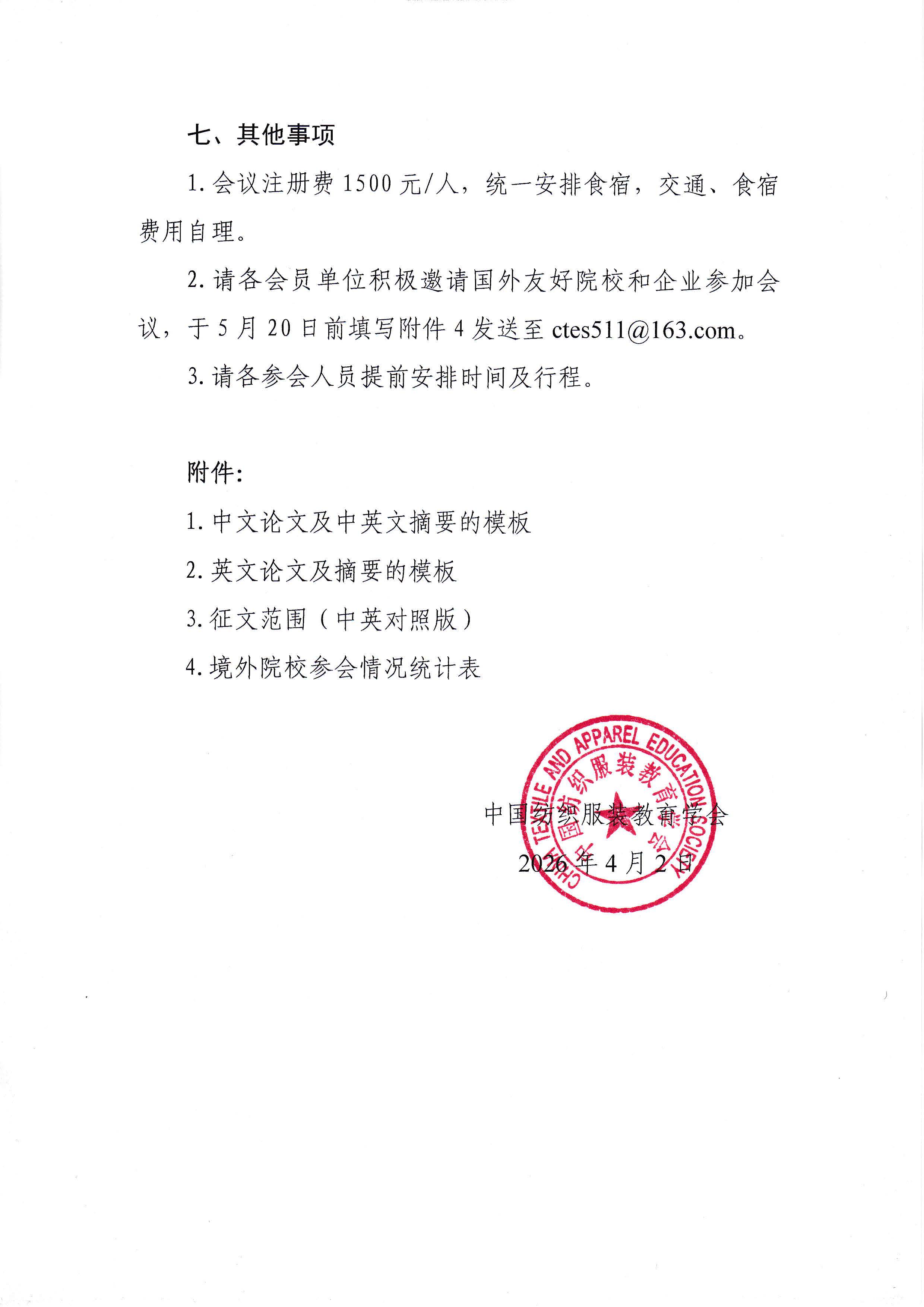 关于召开第四届纺织服装教育国际会议的通知
