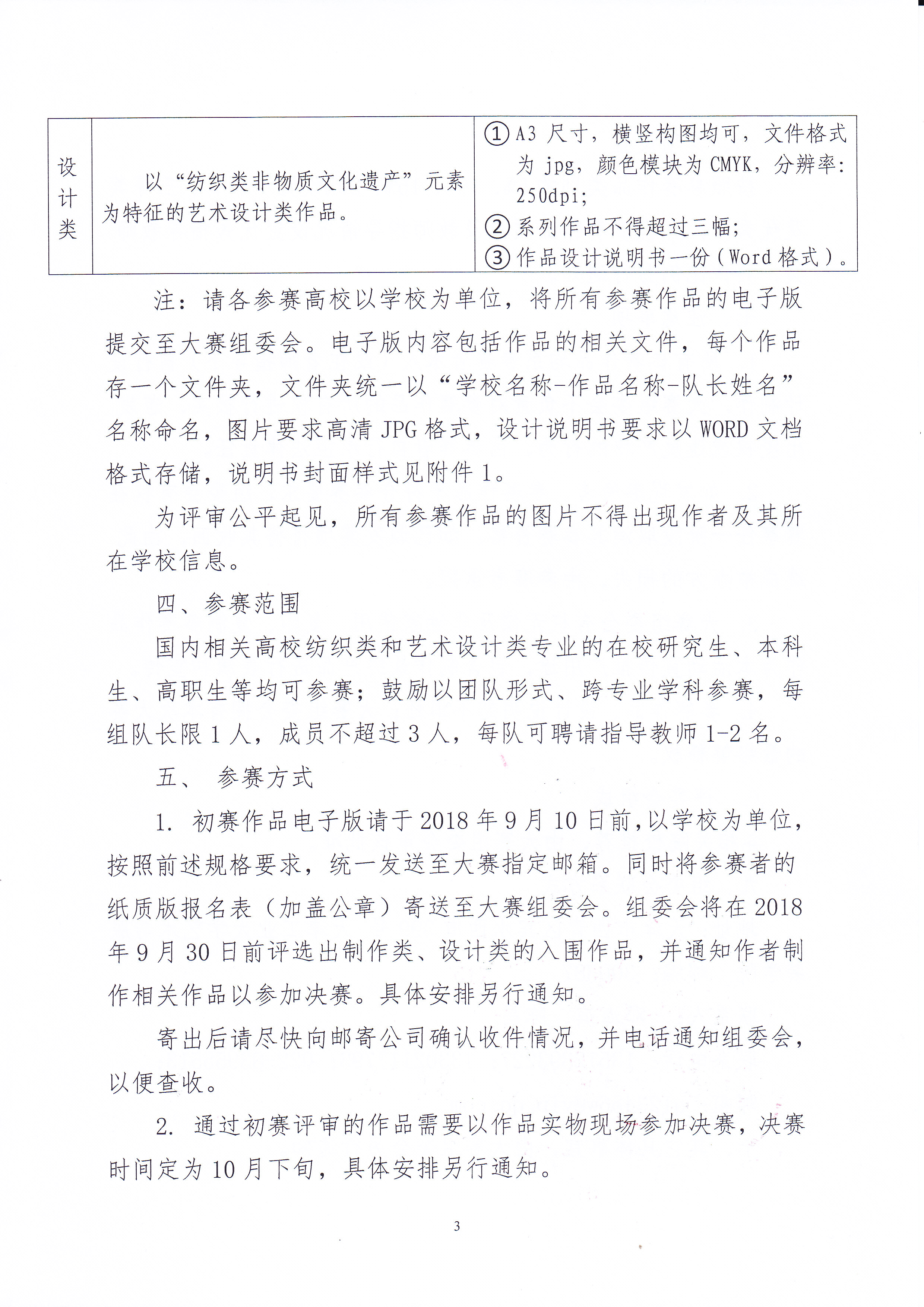 关于举办第三届大学生“纺织类非物质文化遗产”创意创新作品大赛的通知