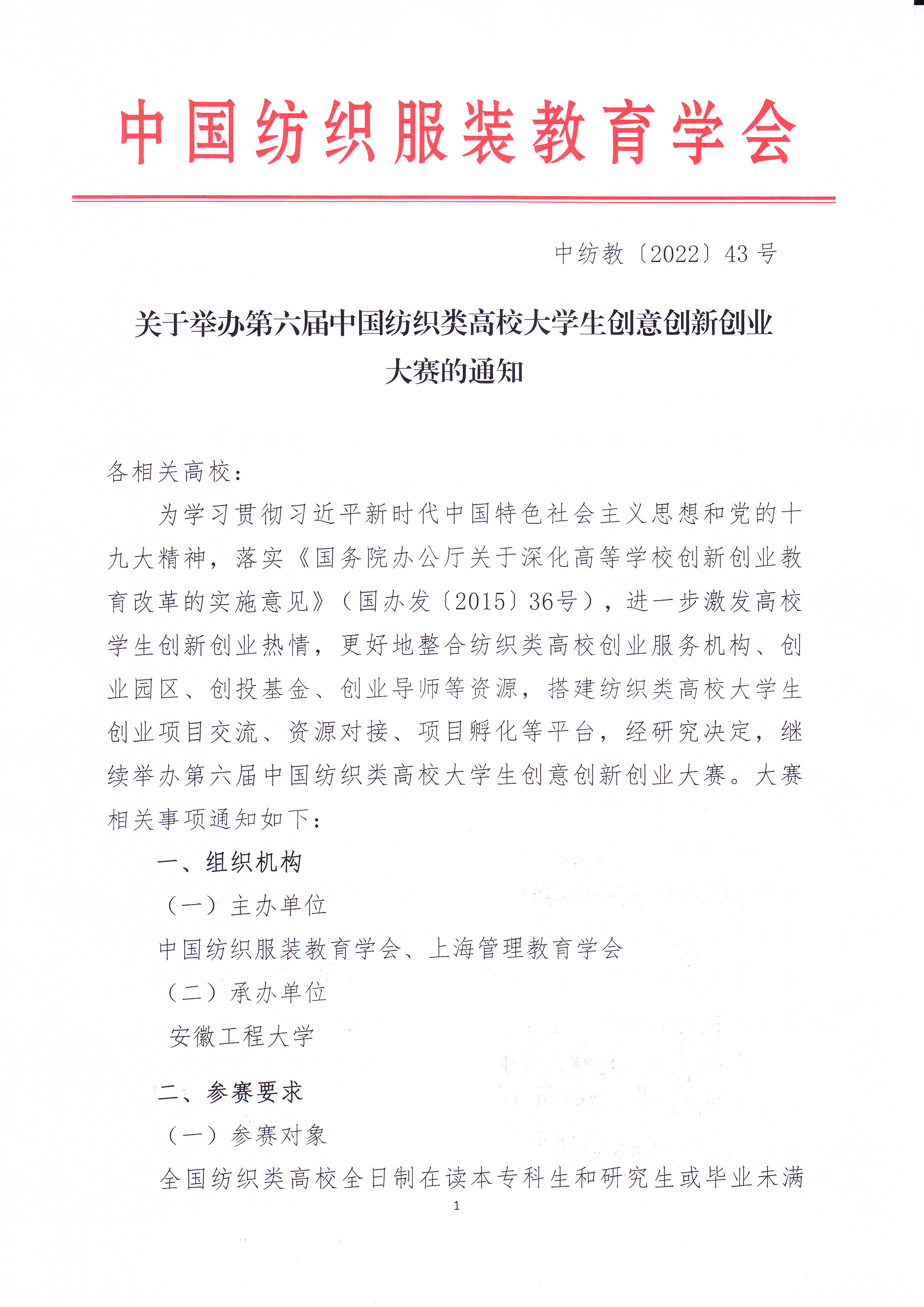 关于举办第六届中国纺织类高校大学生创意创新创业大赛的通知