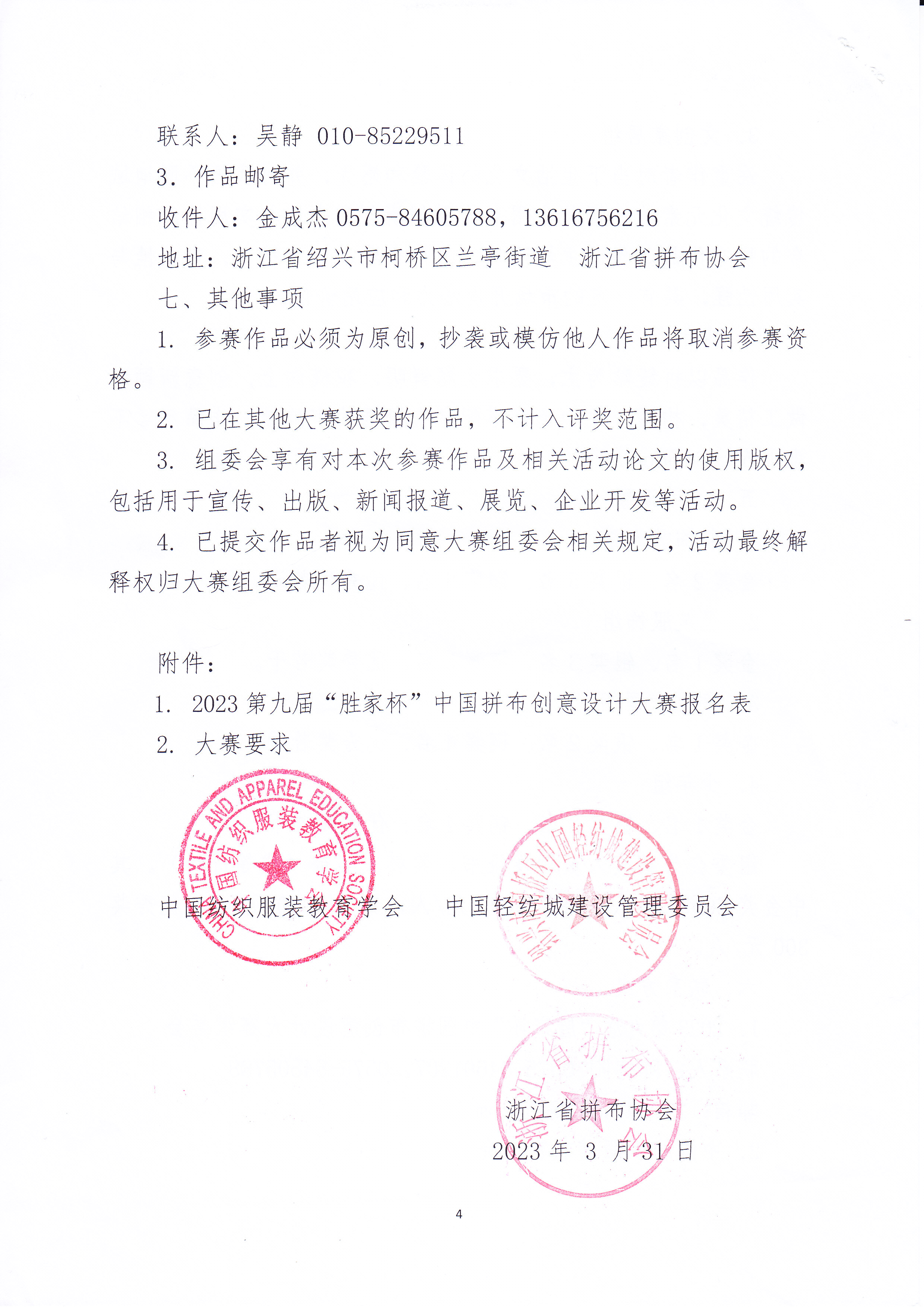 关于举办2023第九届“胜家杯”中国拼布创意设计大赛的通知