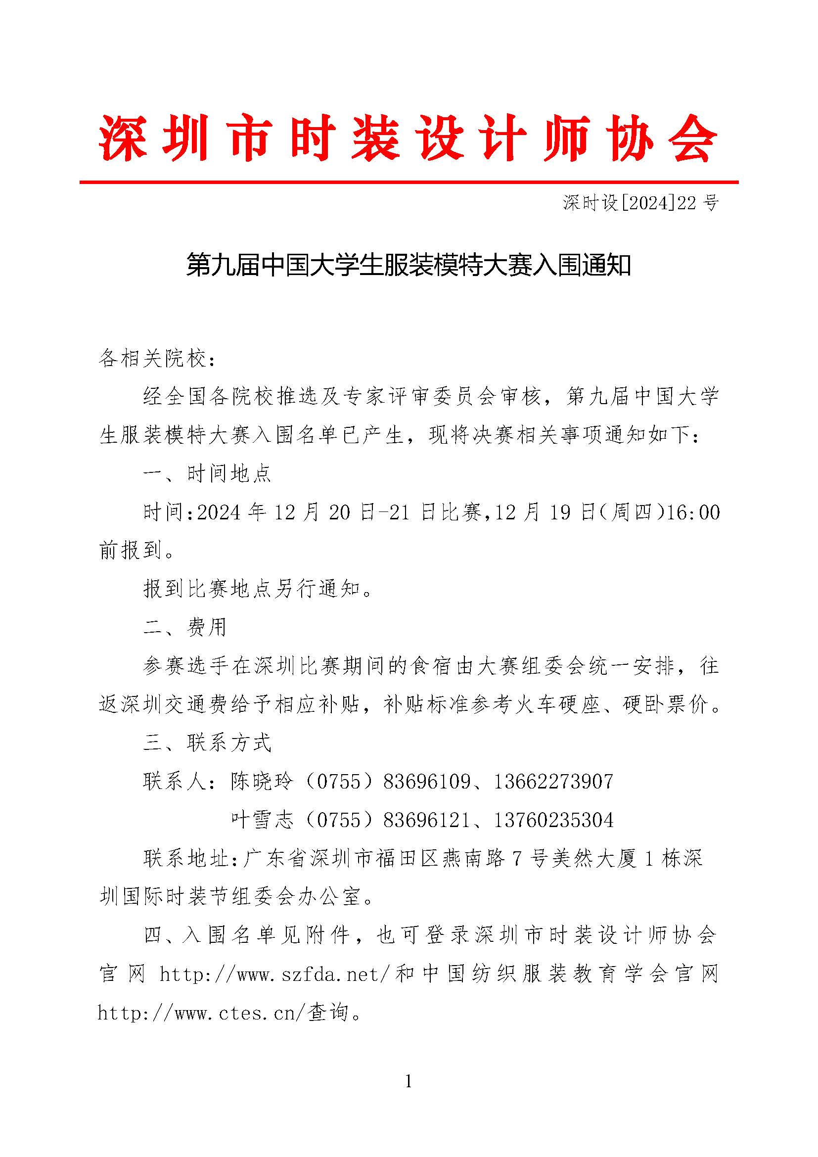附件:第九届中国大学生服装模特大赛入围名单及决赛注意事项