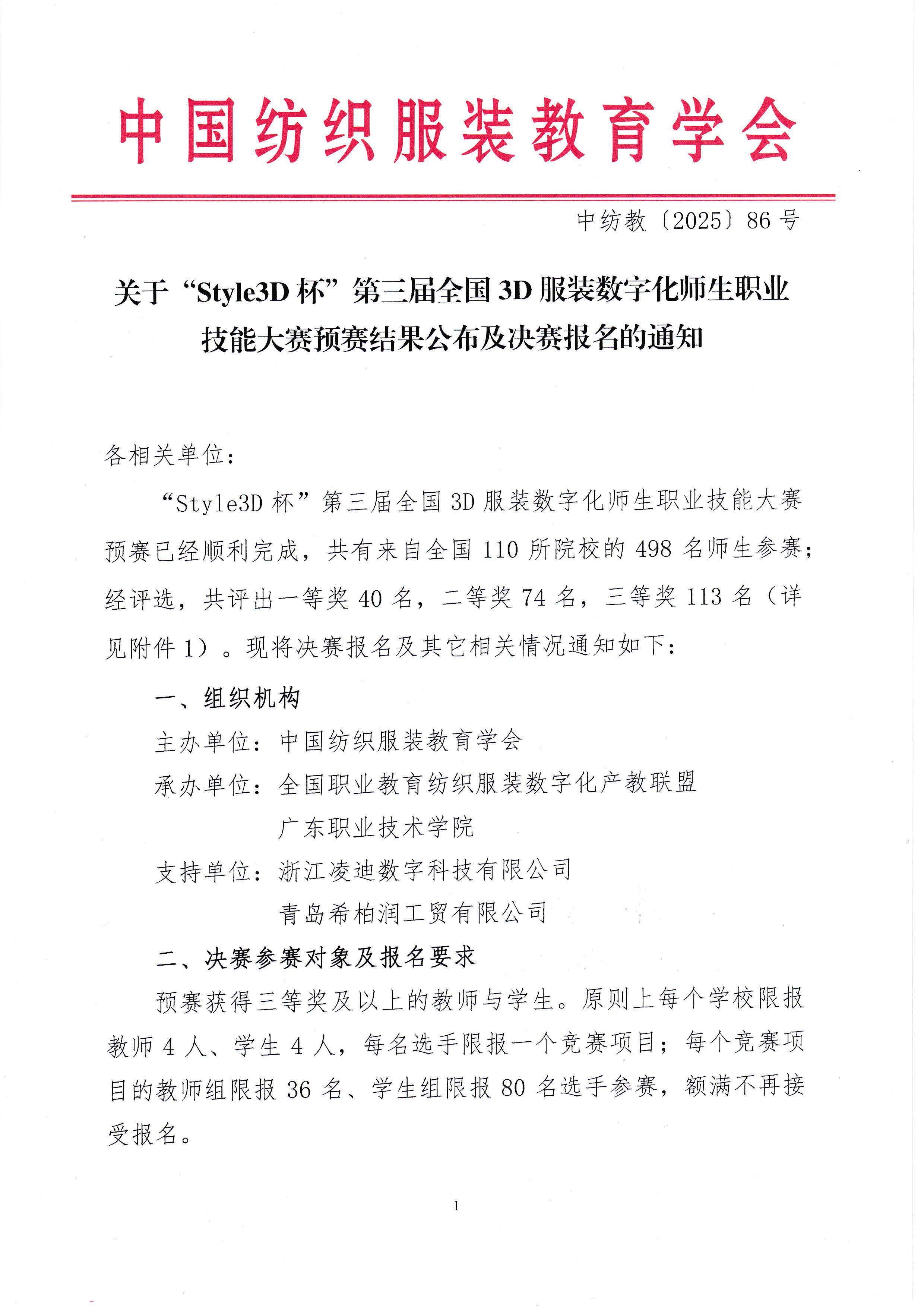 关于“Style3D杯”第三届全国3D服装数字化师生职业技能大赛预赛结果公布及决赛报名的通知