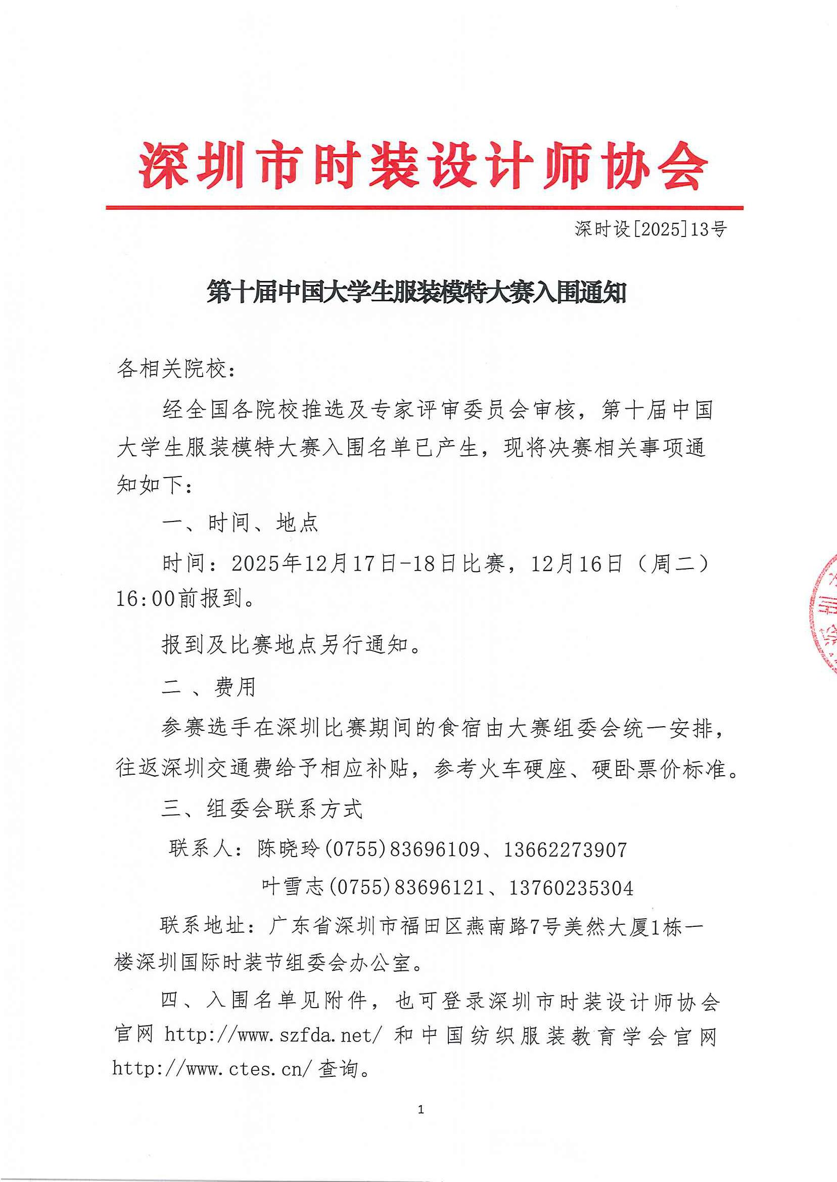 第十届中国大学生服装模特大赛入围通知