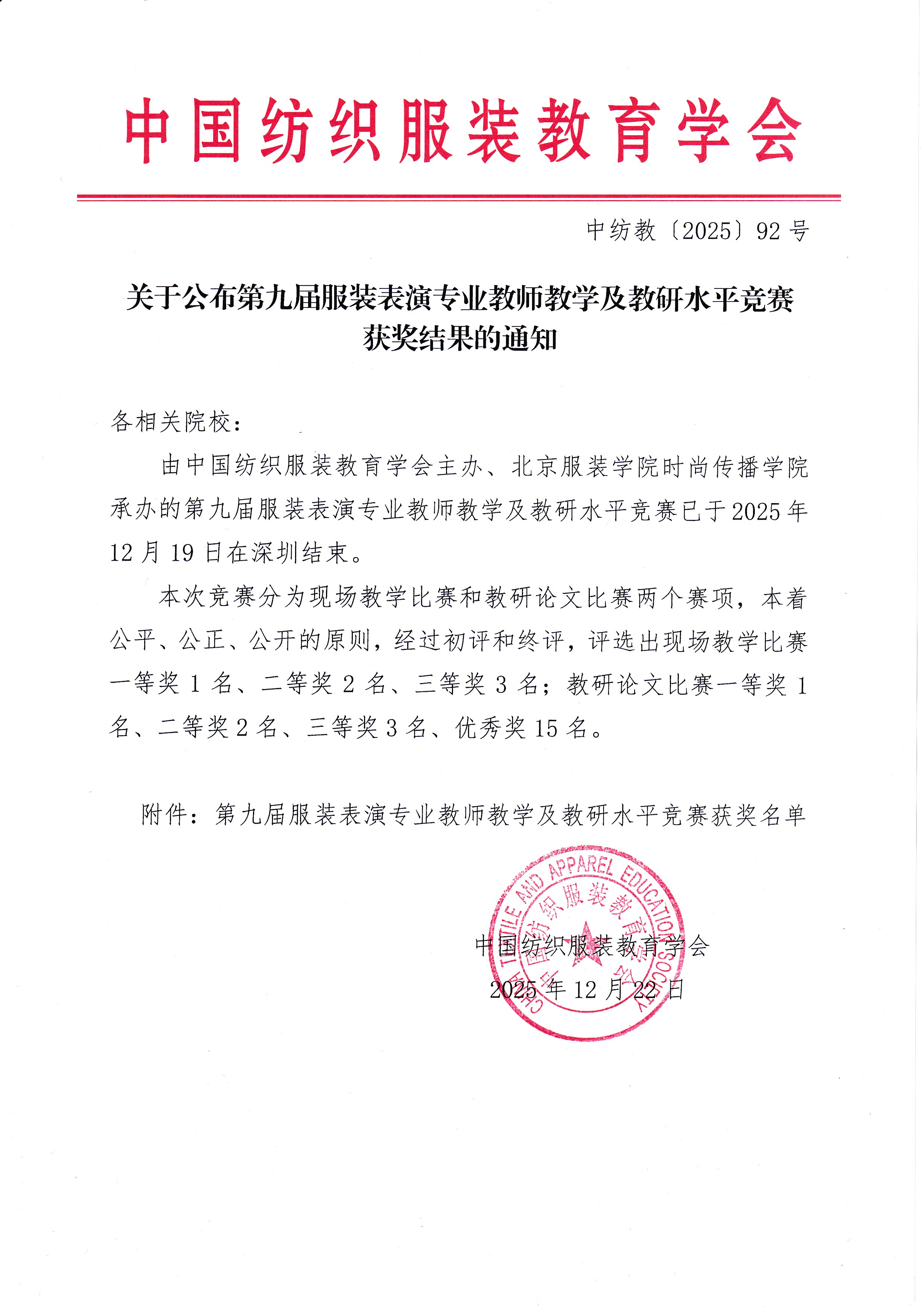 关于公布第九届服装表演专业教师教学及教研水平竞赛获奖结果的通知